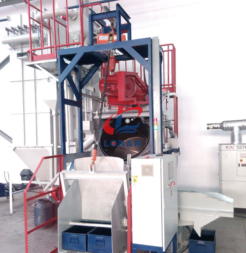 采用特有的滚筒摇动构造,在抛丸清理时,滚筒不仅转动而且还上下动摇,因此筒内产品完全被搅拌,达到了均匀清理效果。